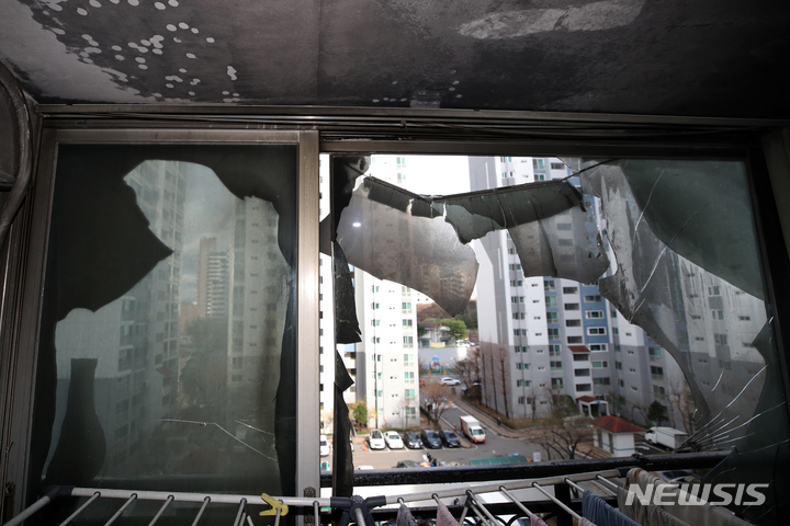 검게 그을린 아파트 베란다