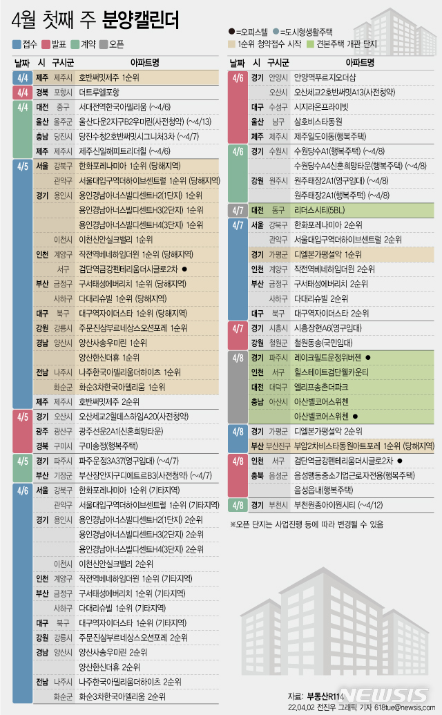 [그래픽] [분양캘린더] 4월 첫째 주 전국 6625가구 분양
