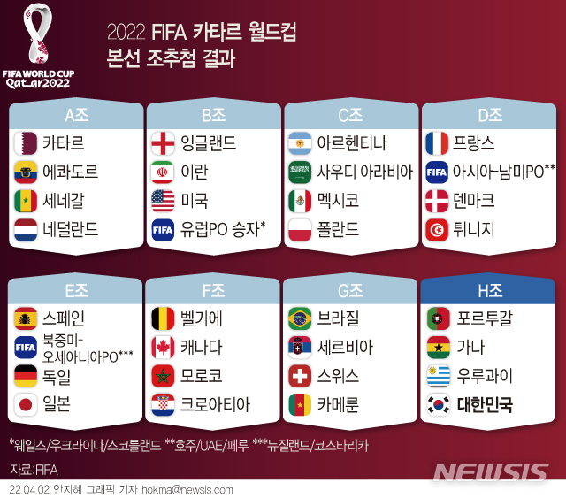 [그래픽] 2022 FIFA 카타르 월드컵 본선 조추첨 결과