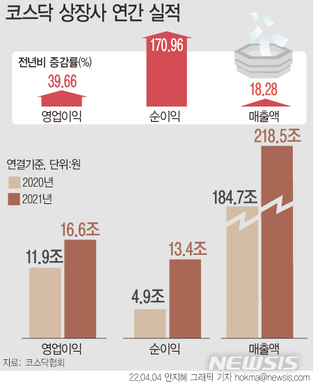 [그래픽] 코스닥 상장사 작년 영업익 16.6조원…전년比 40%↑
