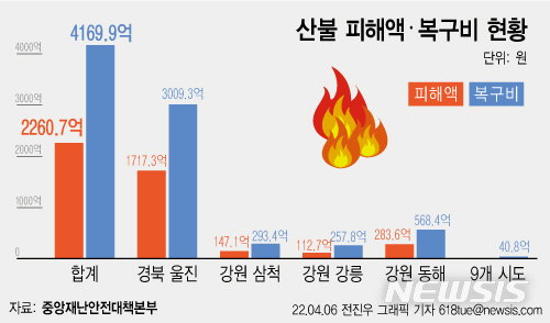 [그래픽] 경북·강원 산불 피해 복구비 4170억 확정…역대 최대
