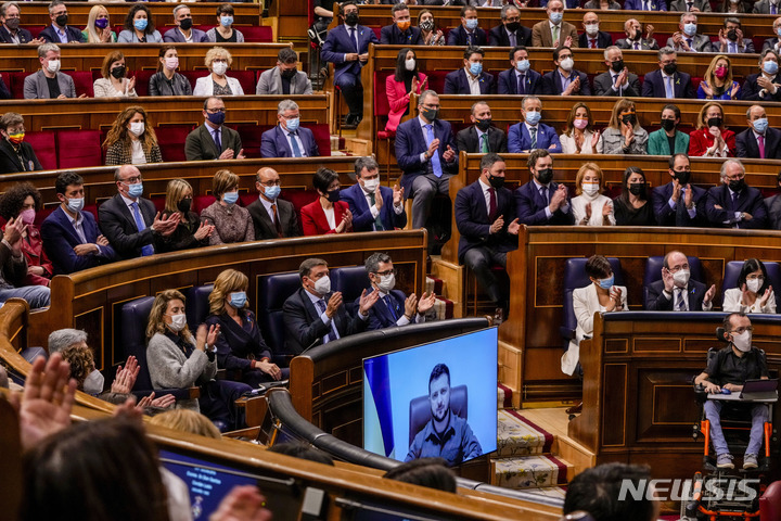 젤렌스키 연설에 박수하는 스페인 의원들