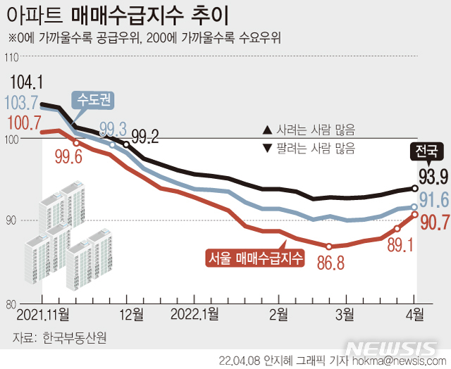[그래픽] 아파트 매수심리 회복 중…서울 매매수급지수 5주째 상승