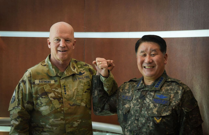 미 우주군참모총장과 기념촬영하는 박인호 공군참모총장