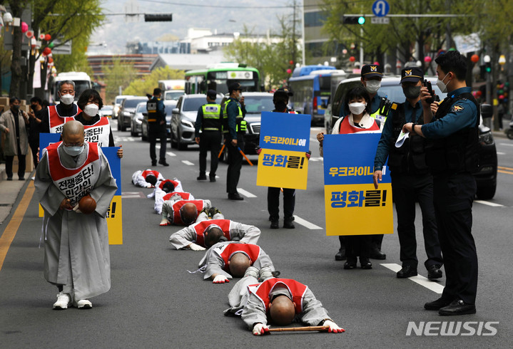 조계종 사노위 스님 등 '우크라이나 평화 기원' 오체투지