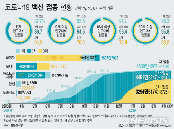 [그래픽] 코로나19 접종 현황… 60세이상 백신 4차접종 확대
