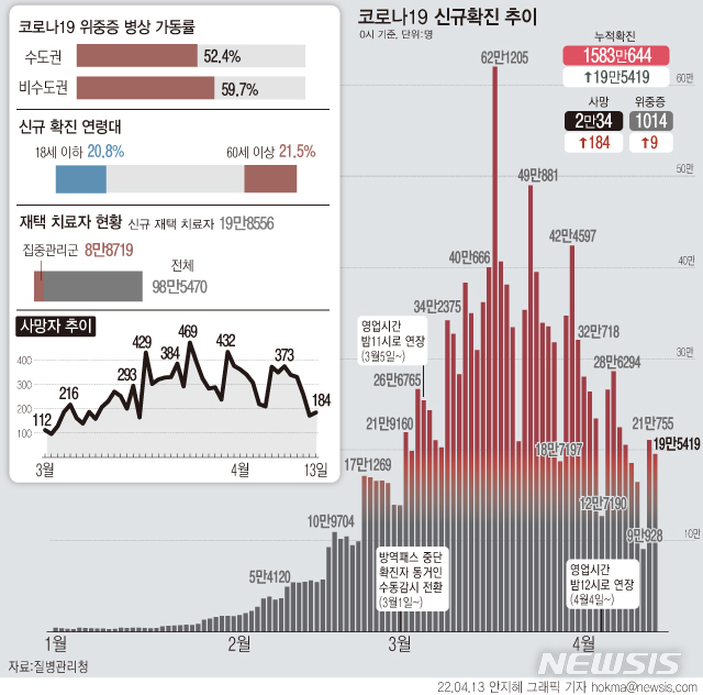 [그래픽] 코로나 누적 사망자 2만명 넘어…신규확진 19만5419명