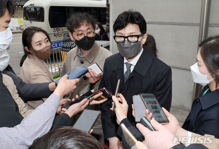 취재진 질문 받는 한동훈 법무부 장관 후보자