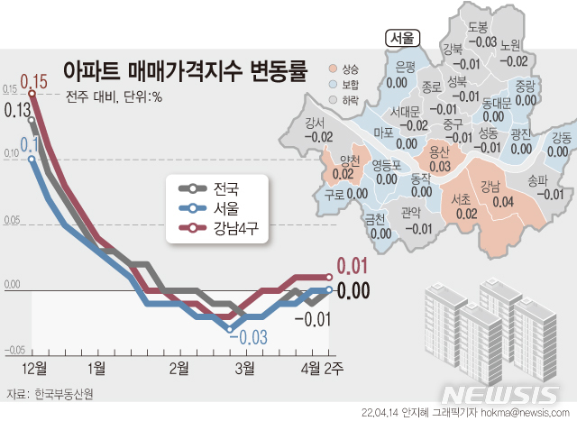 [그래픽] 서울 집값 보합세 유지…지역·가격별 양극화