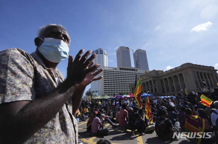 시위 현장서 새해 축하하는 스리랑카 시위대