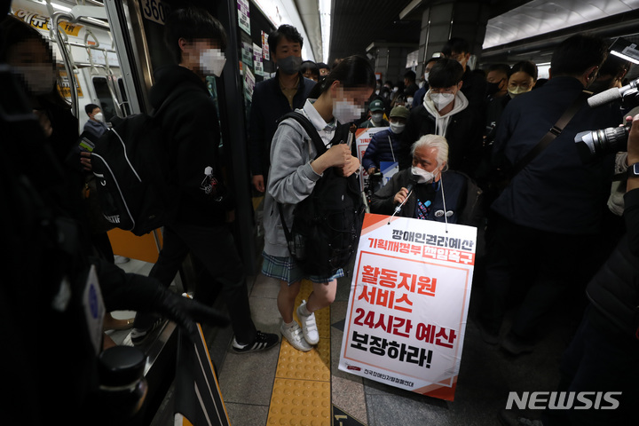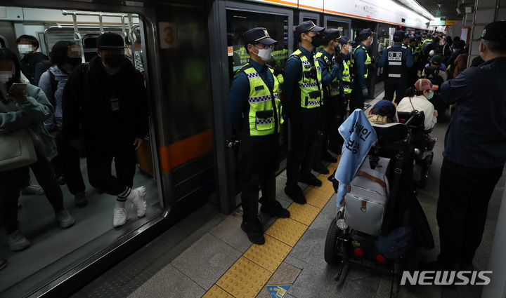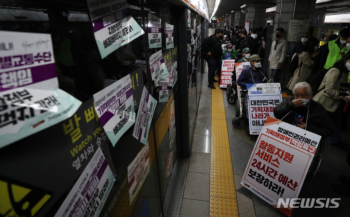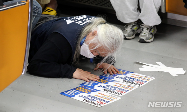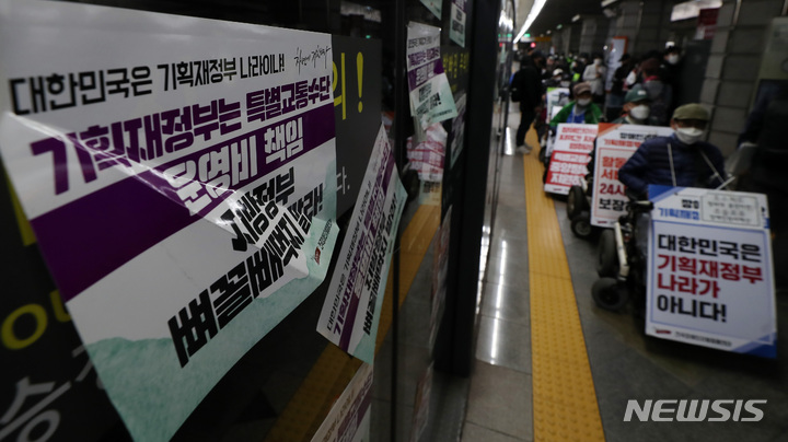지하철 탑승 시위하는 전장연