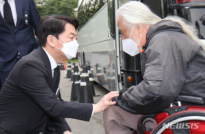 박경석 전장연 상임공동대표와 대화 나누는 안철수 위원장