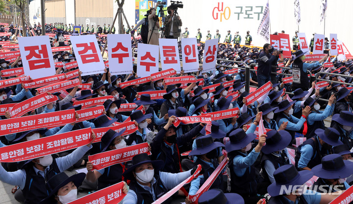 총파업 결의대회하는 코웨이 노조원들