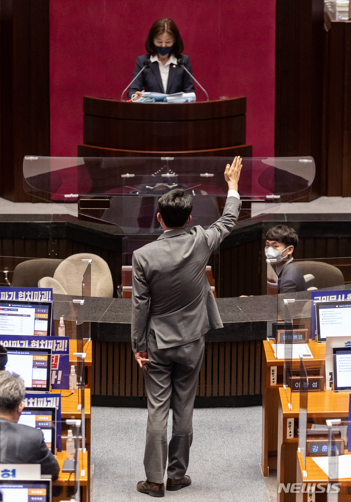 항의하는 진성준 의원