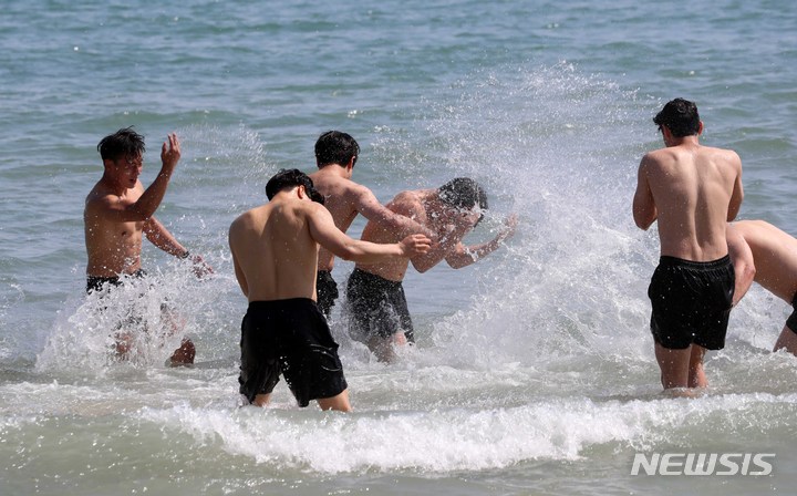 부산 해운대해수욕장에 '풍덩'