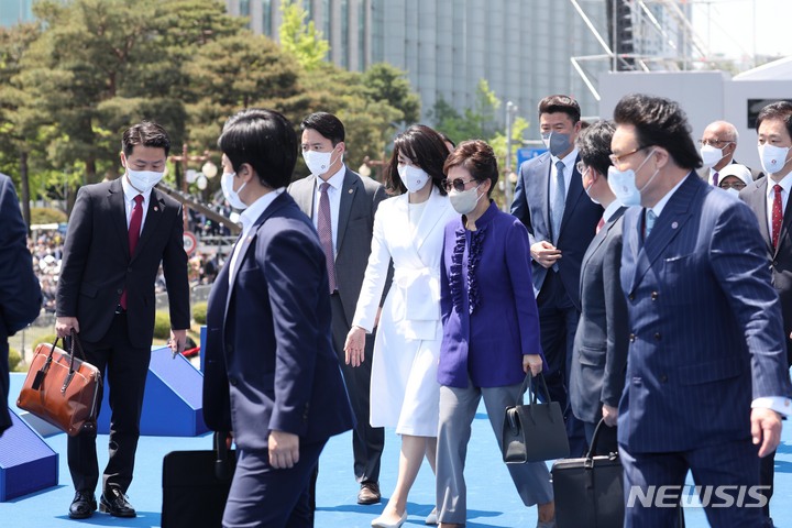 국기에 경례하는 윤석열 대통령-김건희 여사