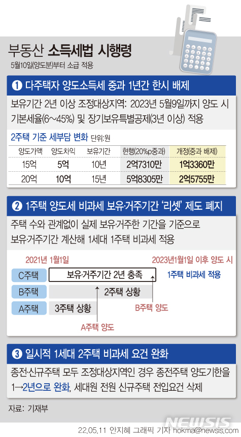 [그래픽] '소득세법 시행령' 개정…다주택자 양도세 중과 1년간 배제