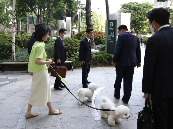 출근하는 윤석열 대통령과 배웅하는 김건희 여사