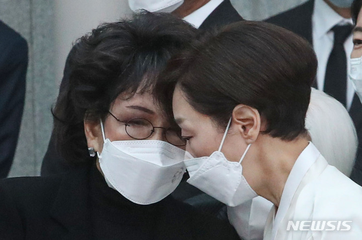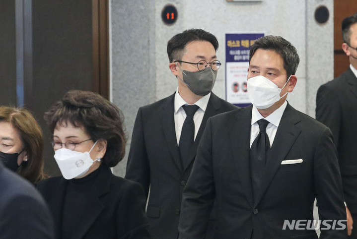 故 구자학 아워홈 회장 영결식 참석하는 이명희-정용진