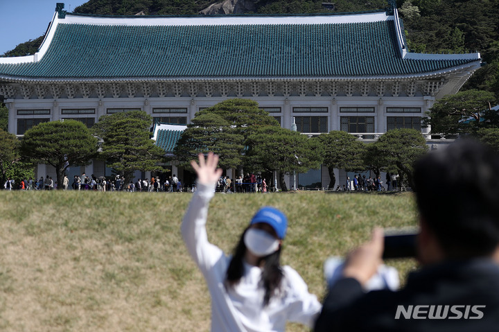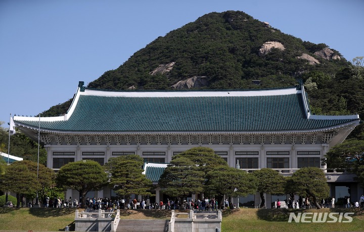 청와대 본관 앞에 몰린 관람객들