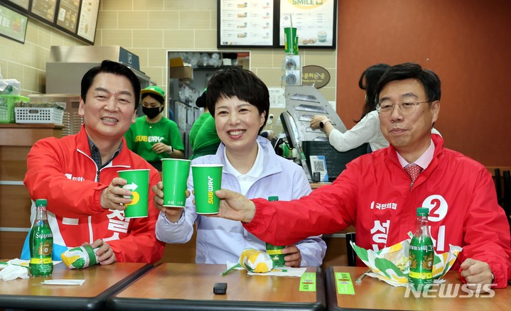 도시락 미팅하는 안철수-김은혜-신상진