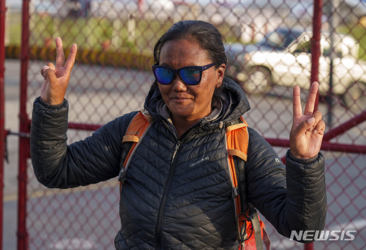 V 포즈 취한 에베레스트 10회 등정 여성 등반가