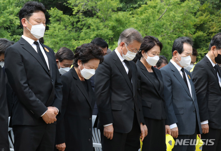 묵념하는 문재인 대통령과 참석자들