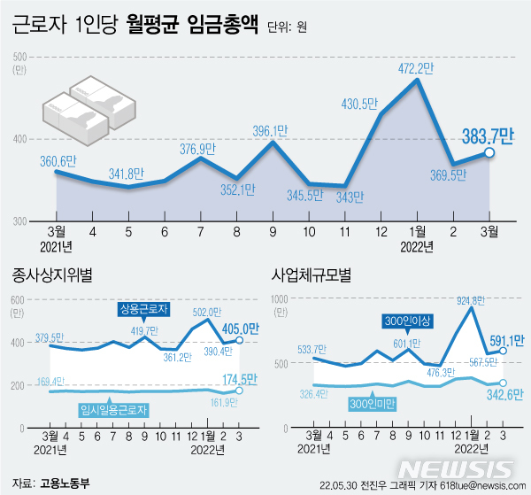 [그래픽] 3월 상용직 근로자 임금 383.7만원