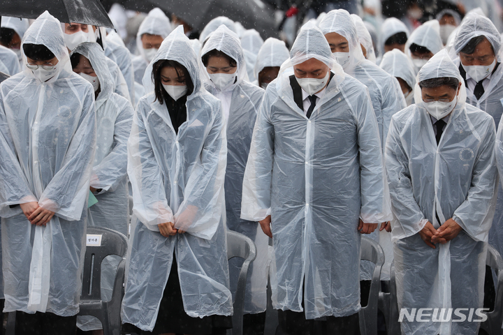 현충일 추모묵념하는 윤석열 대통령 내외