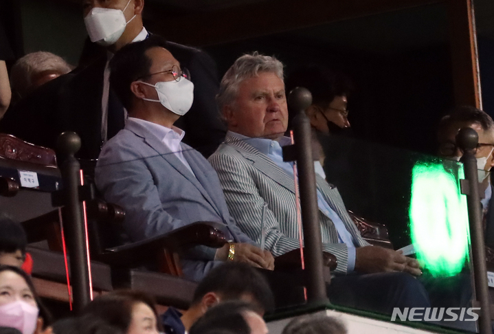 한-칠레전 관람하는 히딩크 전 감독