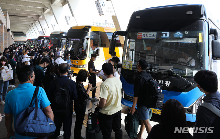 귀성객들로 붐비는 고속버스터미널