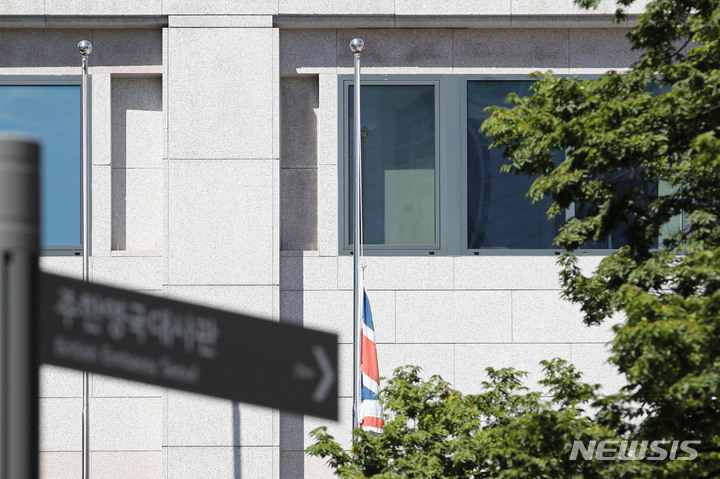 조기 게양된 주한영국대사관
