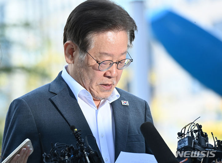 지지자들에게 인사하는 이재명 대표