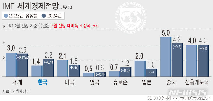 [그래픽] IMF, 올해 한국 성장률 1.4% 전망…내년 2.2%로 하향