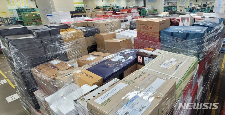 폭설로 눈에 뒤덮인 스키장 주차 차량