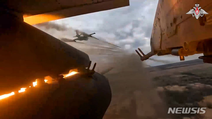 우크라 상공에서 로켓 발사하는 러시아 공군