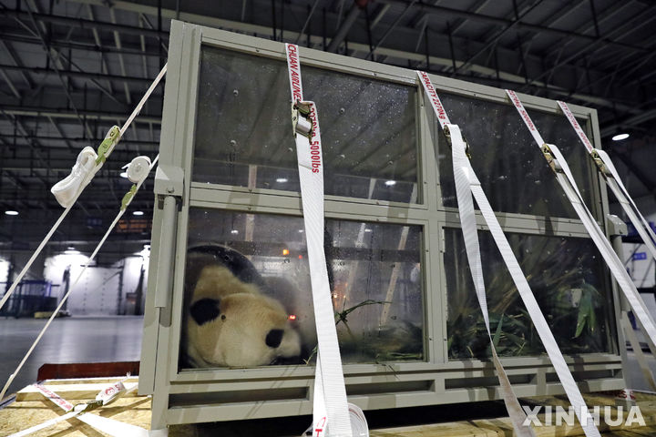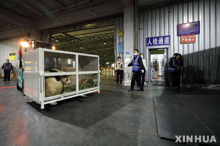 청두 솽류국제공항 도착한 강철원 사육사