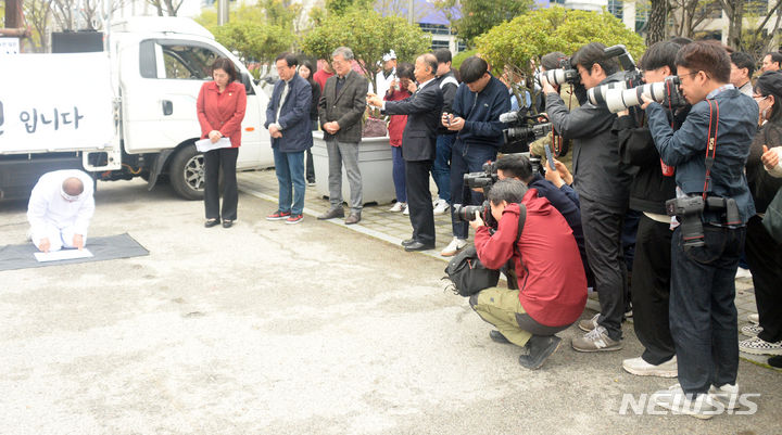 혈서 쓰는 정운천 후보