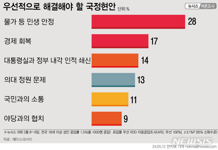 [그래픽] 국민 45%, 민생안정·경제회복이 최우선 국정과제