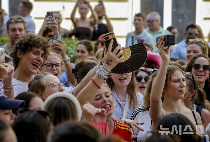 시내에 모여 노래 부르는 테일러 스위프트 팬들