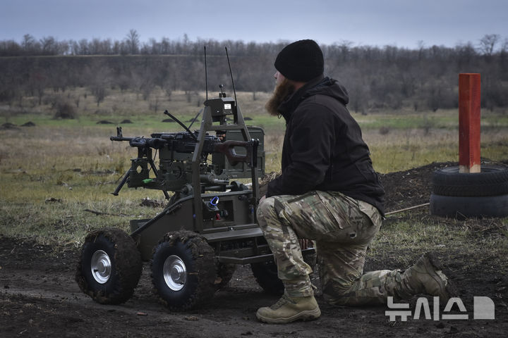 지상 드론 작동법 설명하는 우크라이나 군인