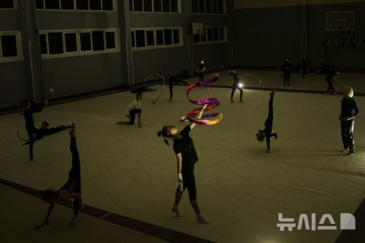 정전 속 훈련하는 우크라이나 체조 선수들