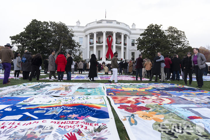 백악관 잔디 전시 작품 보는 에이즈 생존자와 가족들