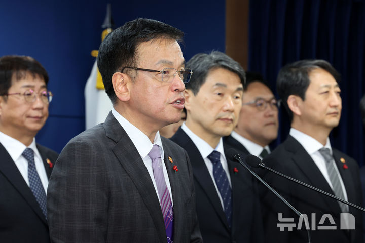 관계부처 합동 성명문 낭독하는 최상목 부총리