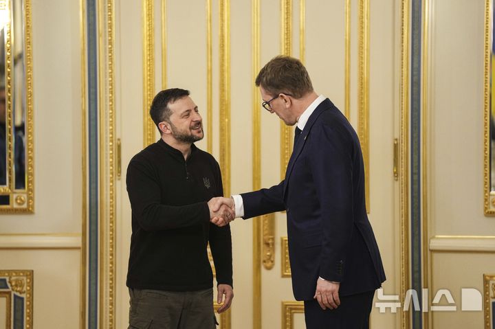 젤렌스키 대통령과 악수하는 미할 에스토니아 총리