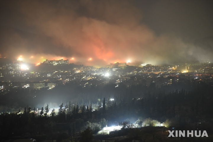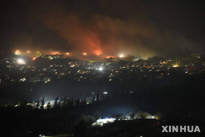 이스라엘 공습으로 연기 피어오르는 다마스쿠스