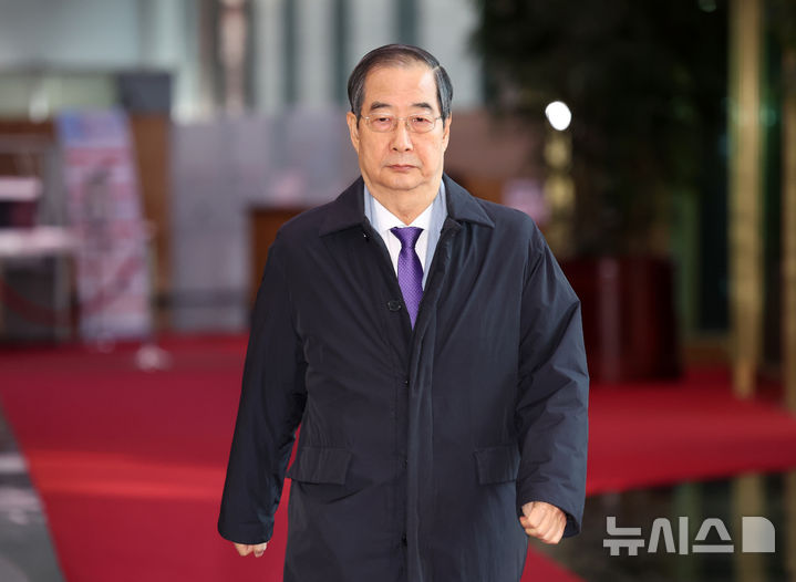 탄핵 소추안 표결 하루 앞두고 출근하는 한덕수 총리