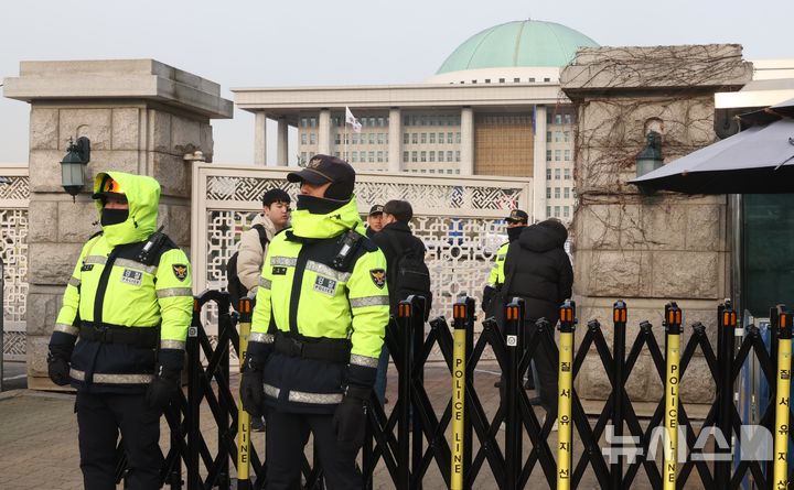 D-1, '윤석열 탄핵' 본회의 앞두고 방문객 출입통제 하는 경찰