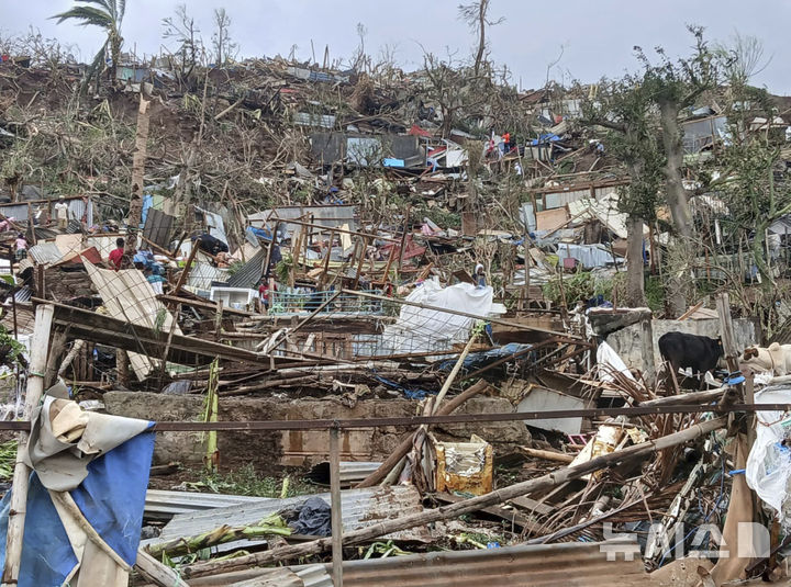 사이클론 '치도'로 파괴된 마요트섬 가옥들