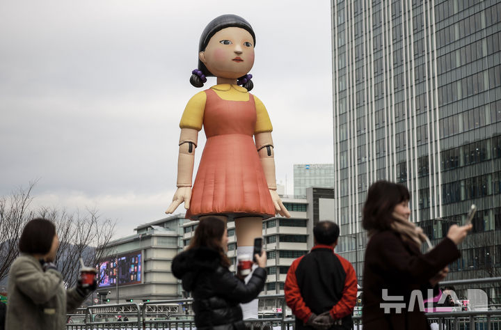 광화문광장에 뜬 오징어게임 '영희'